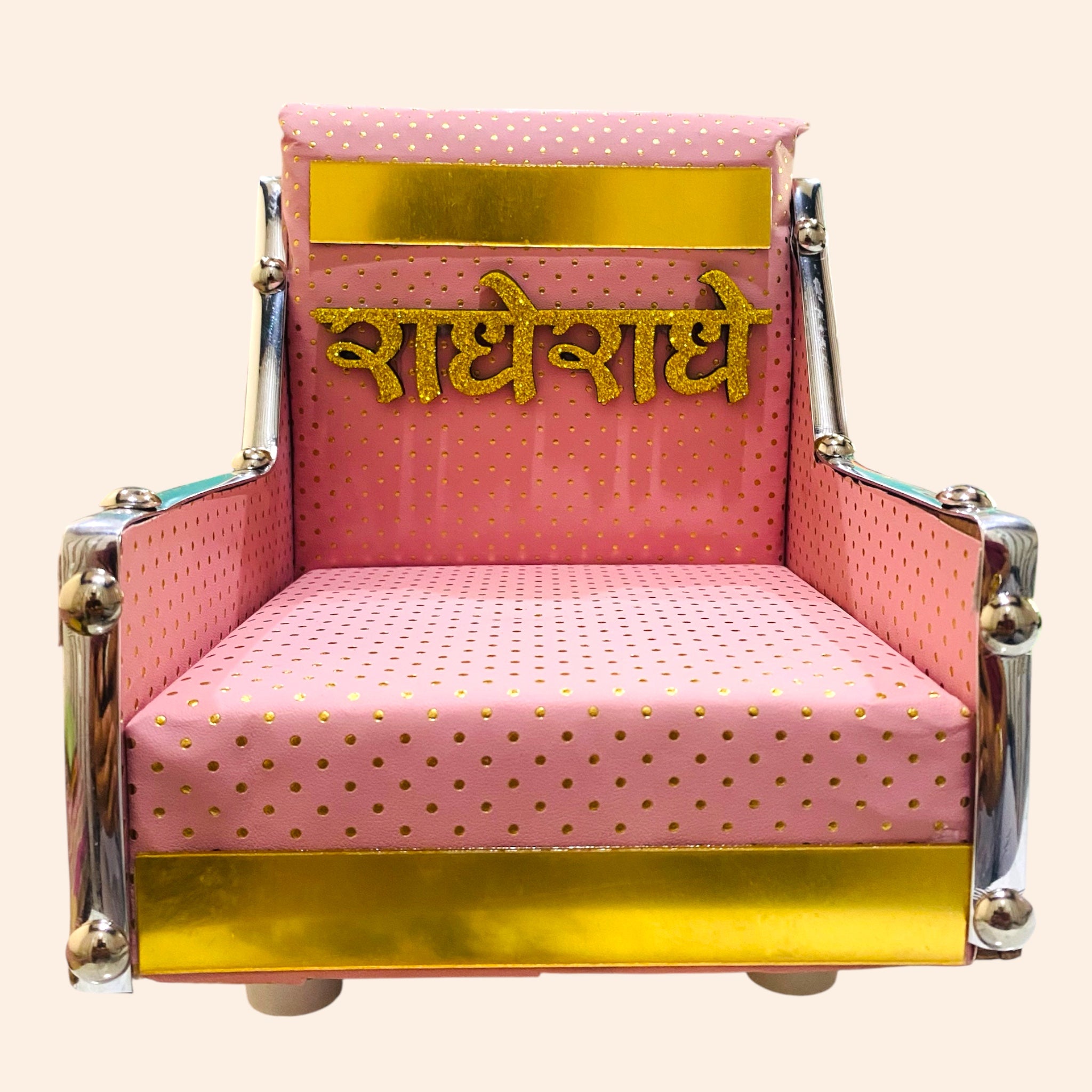 Elevate your Laddu Gopal Ji’s seating with this charming Pink Singhasan, featuring a beautifully designed “Radhe Radhe” sticker on the backrest. Crafted with a solid wooden base and vibrant pink upholstery, this singhasan adds a divine and elegant touch to your home temple. The sturdy design ensures durability, while the spiritual sticker enhances its devotional appeal.